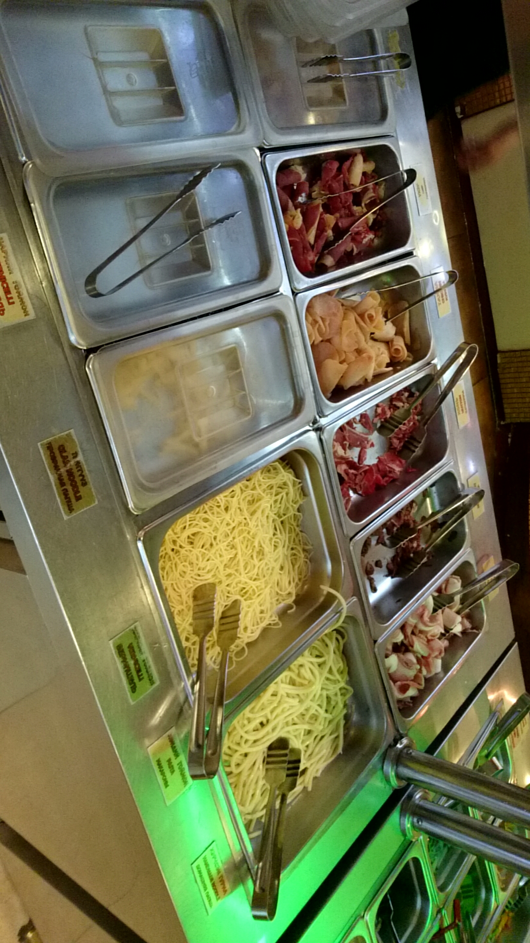 このレストランでのメインとなるのが、モンゴル式の焼きそば。「野菜・肉・麺・ソース・スパイス」をそれぞれ自分好みに選んでいき、カウンターに持っていくと大きな鉄板の上で焼きそばを作ってくれます。